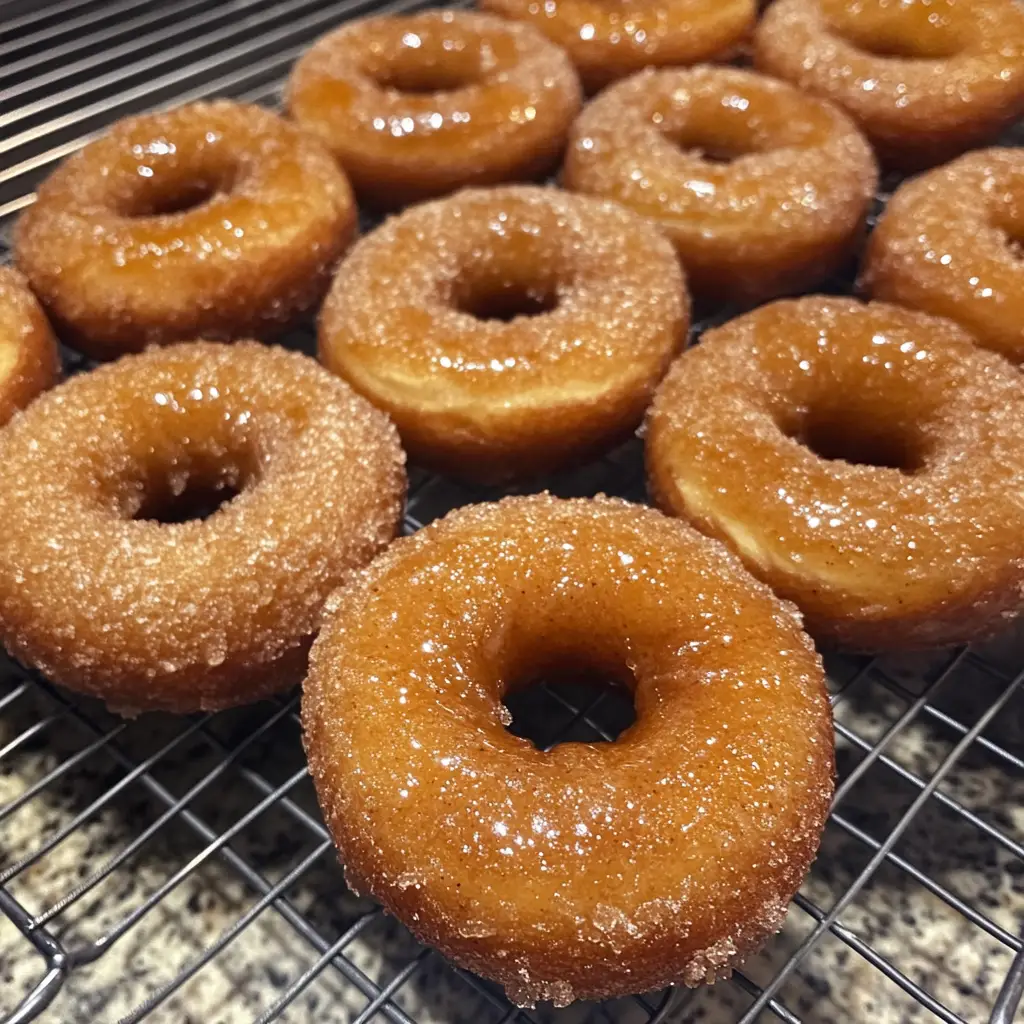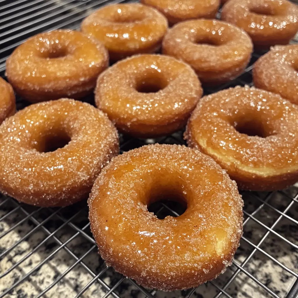 - Optional: Roll the warm doughnuts in cinnamon sugar for extra flavor.