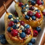 This delightful creation serves not just as a dessert but transforms into an experience, a sumptuous fusion of flavors that evokes joy and nostalgia. Whether you’re entertaining guests or enjoying an intimate moment by the fire, Baked Pears with Berries, Honey, Walnuts, and Blue Cheese captivates every diner. Picture it: an elegant centerpiece at your dinner table, irresistible and fragrant, inviting each person to dive in and savor the moment.