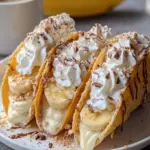 Nestled in the heart of dessert innovation lies a treat that beautifully marries two fan-favorites: the comfort of banana pudding and the delightful crunch of tacos. Imagine the first bite — a burst of creamy, luscious banana pudding flows over your taste buds while the crunchy taco shell creates a satisfying contrast that keeps you reaching for more. The aroma of ripe bananas mingles with sweet creaminess, inviting everyone to gather around and indulge. As if that weren’t enough, the glistening whipped cream and delicate chocolate shavings on top add a whimsical touch, transforming a classic dessert into a playful masterpiece.