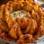 There’s something utterly captivating about gathering around a large, blooming onion at a shared table. It’s not just food; it’s an experience. Perfect for parties, game nights, or a casual evening in, this savory delight steals the show. Friends and family eagerly take turns pulling apart the crispy petals, chuckling and sharing stories as they dive into the warm, savory treasure. This blooming onion is not merely a recipe — it’s a way to connect and celebrate life’s delicious moments.