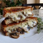 A delicious and indulgent grilled cheese sandwich featuring creamy brie cheese and savory mushrooms, perfect for a comforting meal.