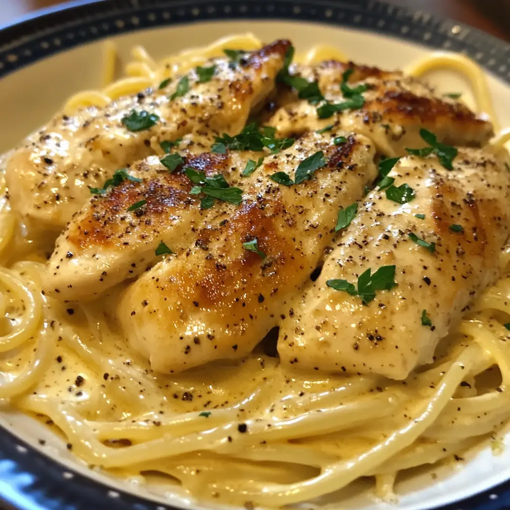 Cooking Cacio E Pepe Chicken is more than just preparing a meal; it’s about creating a moment of joy in your busy life. The creamy sauce and tender chicken come together to form a dish that feels indulgent yet is surprisingly simple to make. Whether you’re sharing it with family or enjoying a quiet dinner alone, each bite is a reminder of the comfort that good food brings. I hope this recipe becomes a staple in your kitchen, just as it has in mine. Embrace the flavors, savor the moments, and enjoy the deliciousness of homemade cooking!