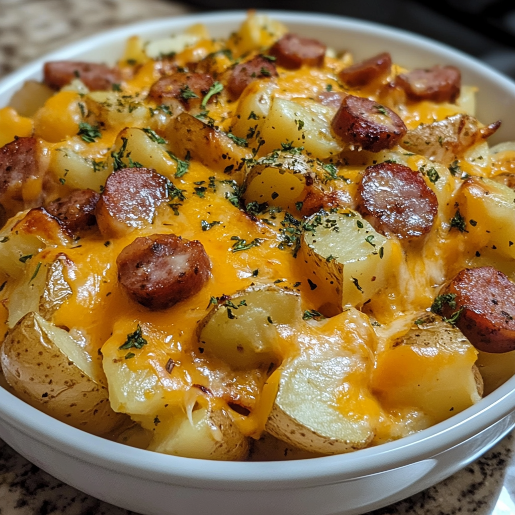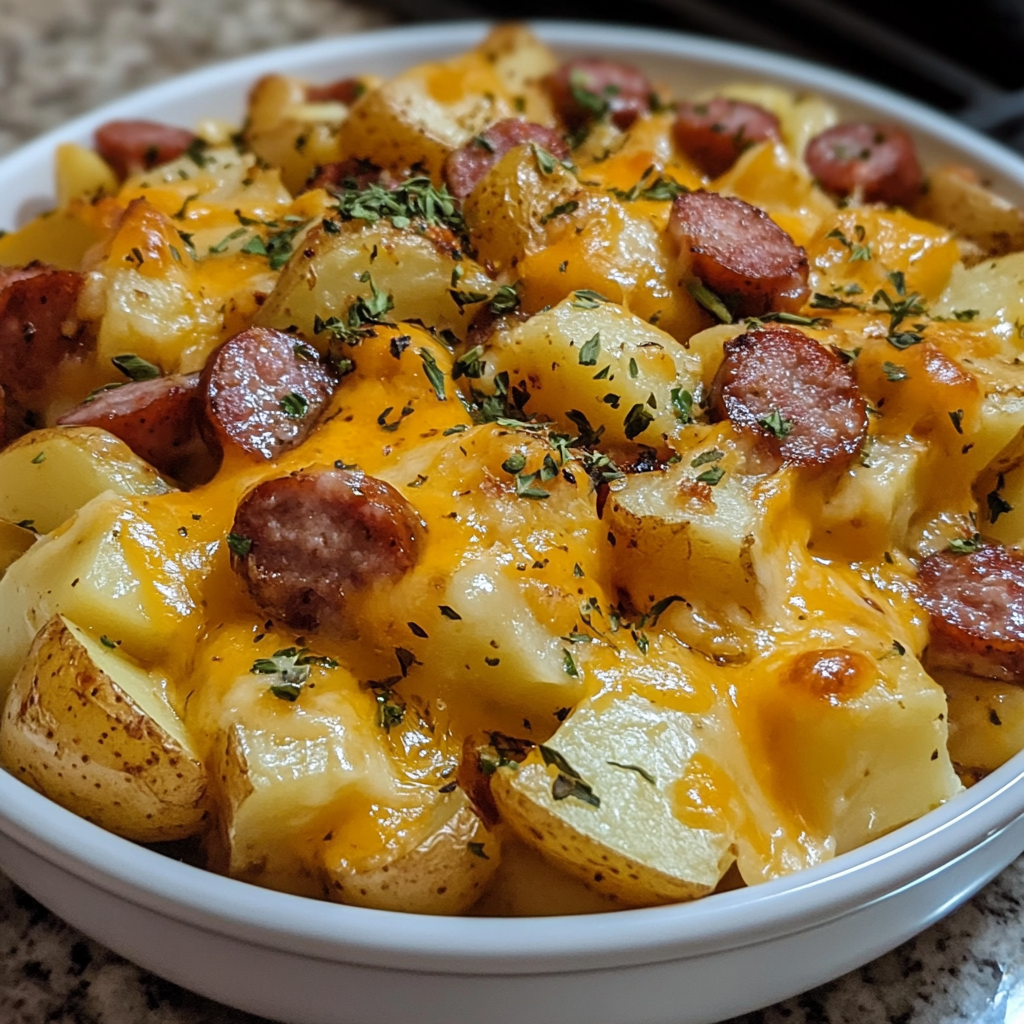 Keywords: Cheesy Ranch Potatoes, Smoked Sausage, Comfort Food, Easy Dinner