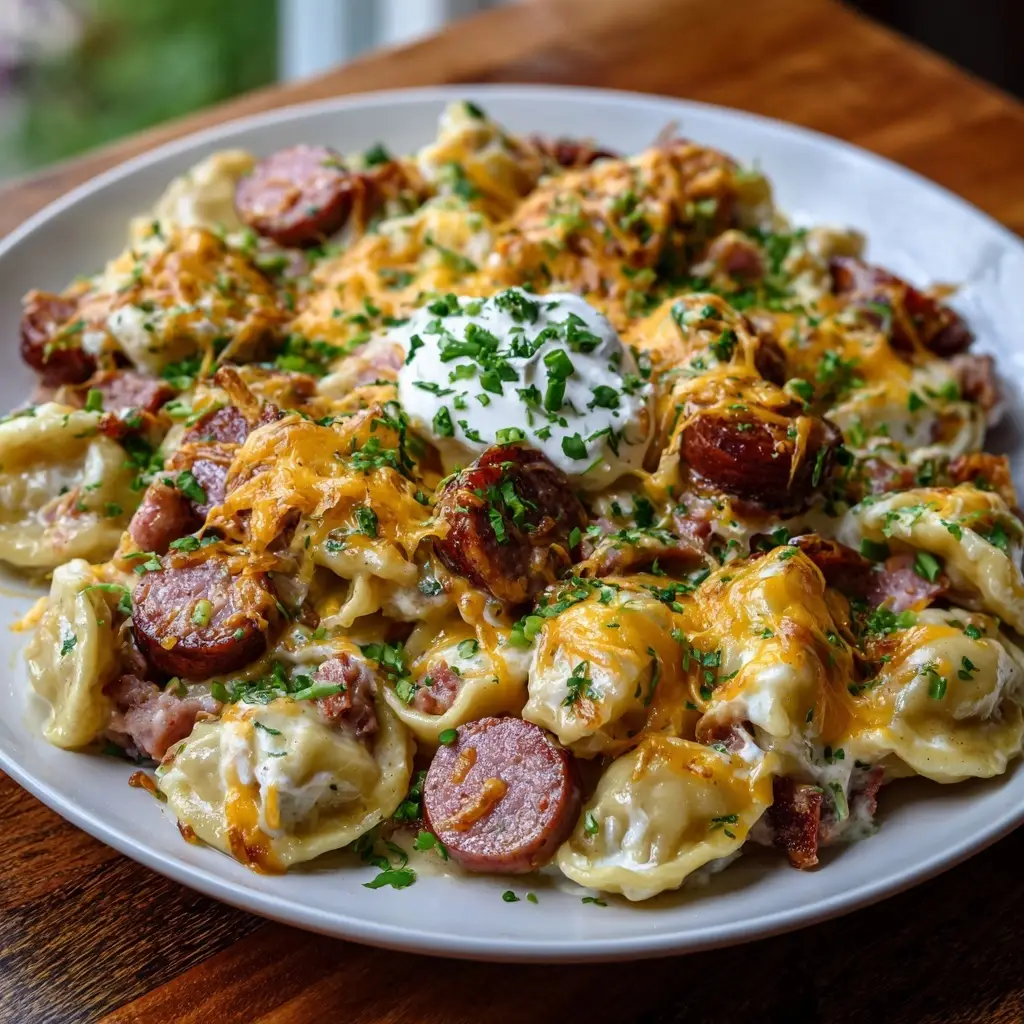 Classic Crockpot Pierogi Casserole with Kielbasa