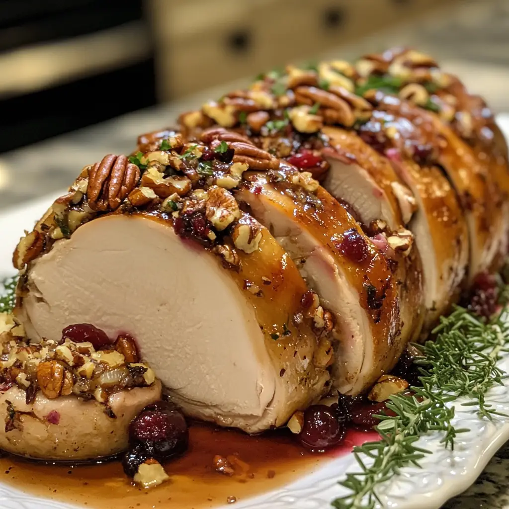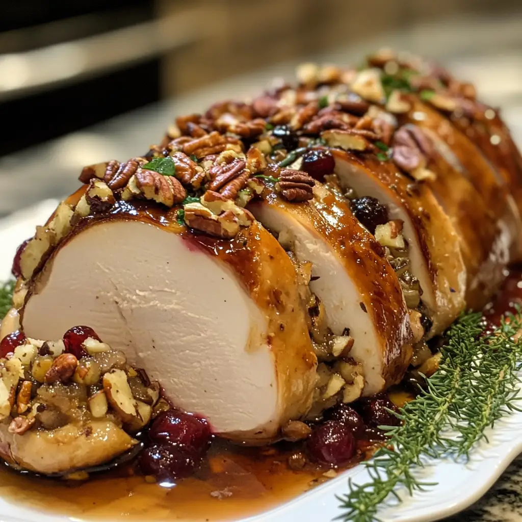 Cranberry Pecan Stuffed Turkey Breast with Citrus Glaze is a delicious and festive dish perfect for holiday gatherings, featuring a savory stuffing and a zesty glaze.