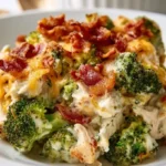 This dish is more than just a meal; it’s a cozy hug on a plate, an invitation to gather around the table with loved ones. Picture it bubbling away, the cheesy topping turning golden brown, enticing you to dig in. Your taste buds awaken with joy as the first forkful reveals layers of comforting goodness. Each mouthful resonates with a crunch from the bacon, the creaminess from the cheeses, and the wholesome heartiness of the chicken and broccoli. This casserole doesn’t just satisfy hunger; it warms the soul and creates lasting memories.