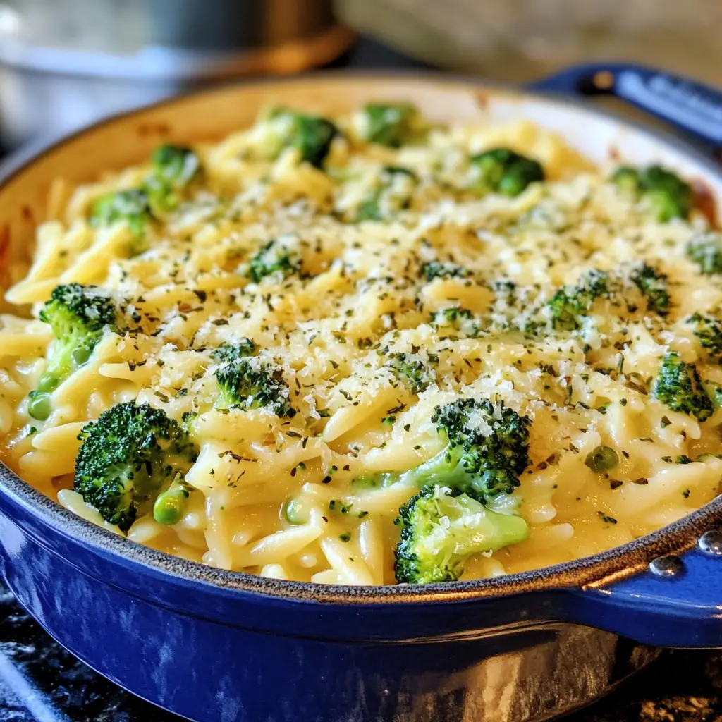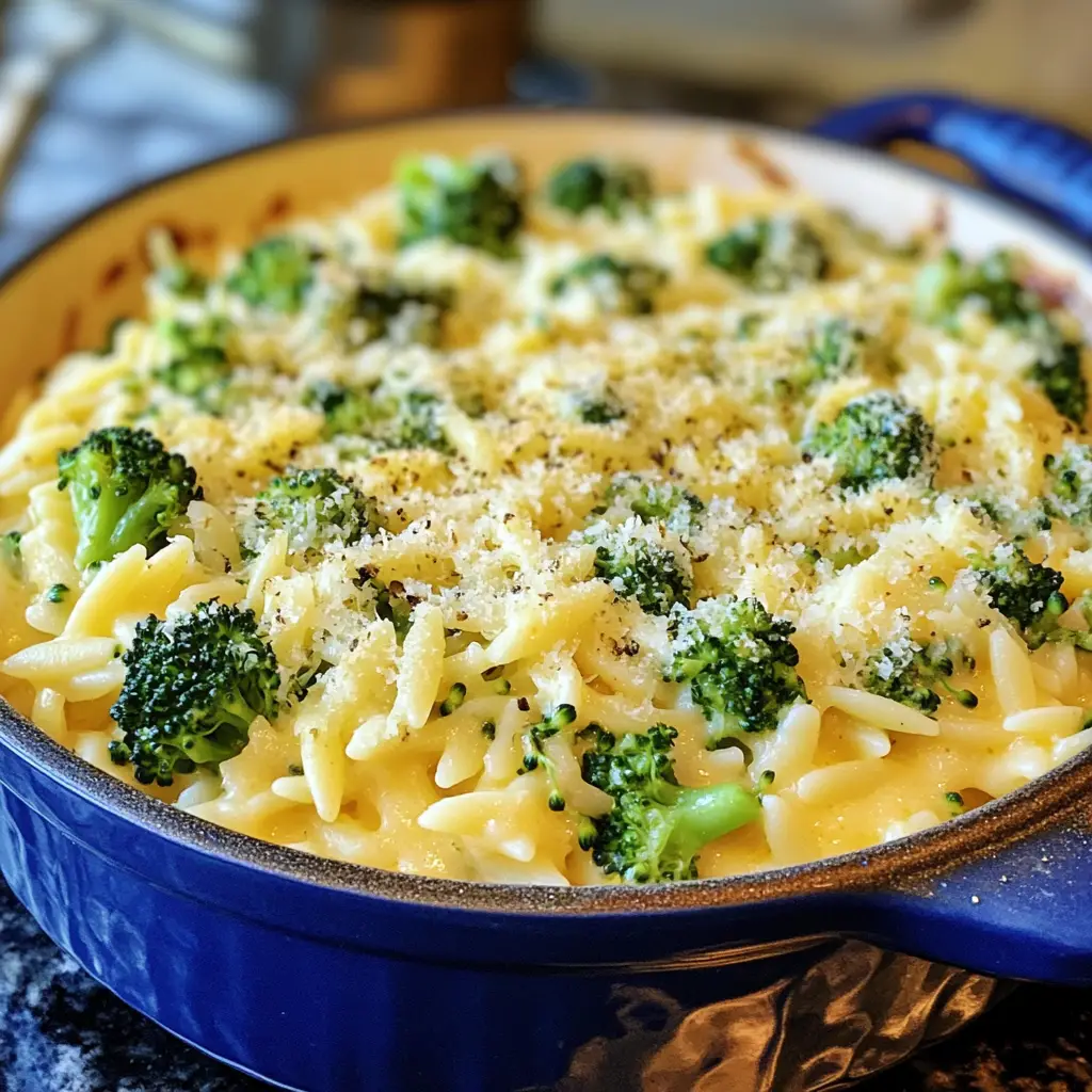 A creamy and delicious one-pot dish featuring orzo pasta, fresh broccoli, and cheddar cheese, perfect for a quick and satisfying meal.