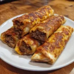 Take a large flour tortilla and place a generous portion of the beef and cheese mixture in the center. Fold in the sides and roll it up tightly, like a burrito. Make sure it’s sealed well to keep all that delicious filling inside. Repeat this process for the remaining tortillas.