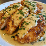 Once the chicken is out of the oven, drizzle the warm garlic sauce over the top. It’s like a warm hug for your chicken! Finish with a sprinkle of fresh parsley for a pop of color and freshness. Now, it’s time to serve and enjoy your Crispy Parmesan Chicken with a Rich Garlic Sauce!