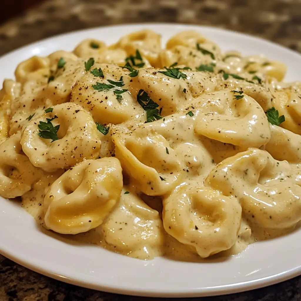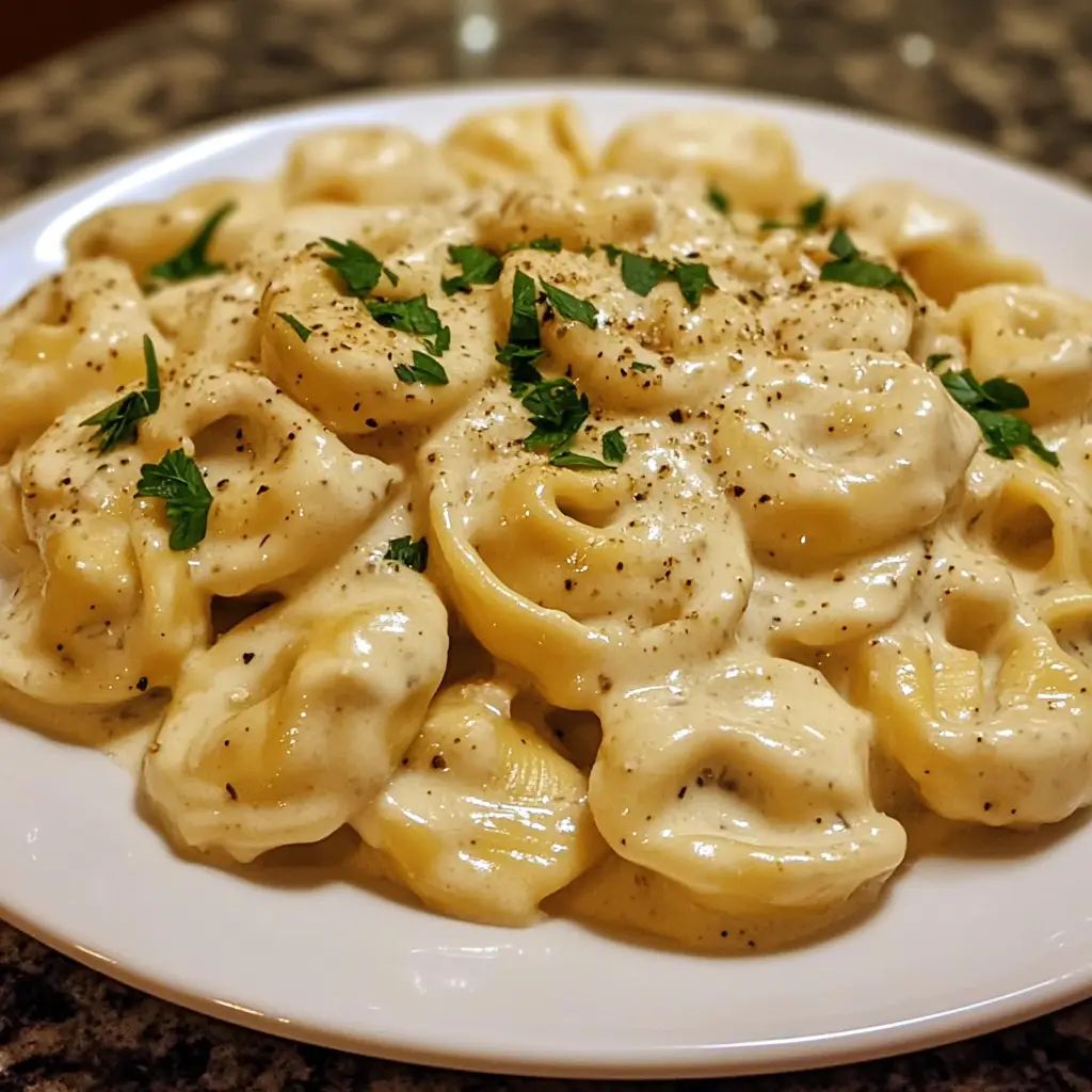 Once the tortellini are cooked, give the entire dish a good stir. The sauce will thicken as it stands. Taste and adjust seasoning if necessary. Garnish generously with fresh chopped parsley before serving.