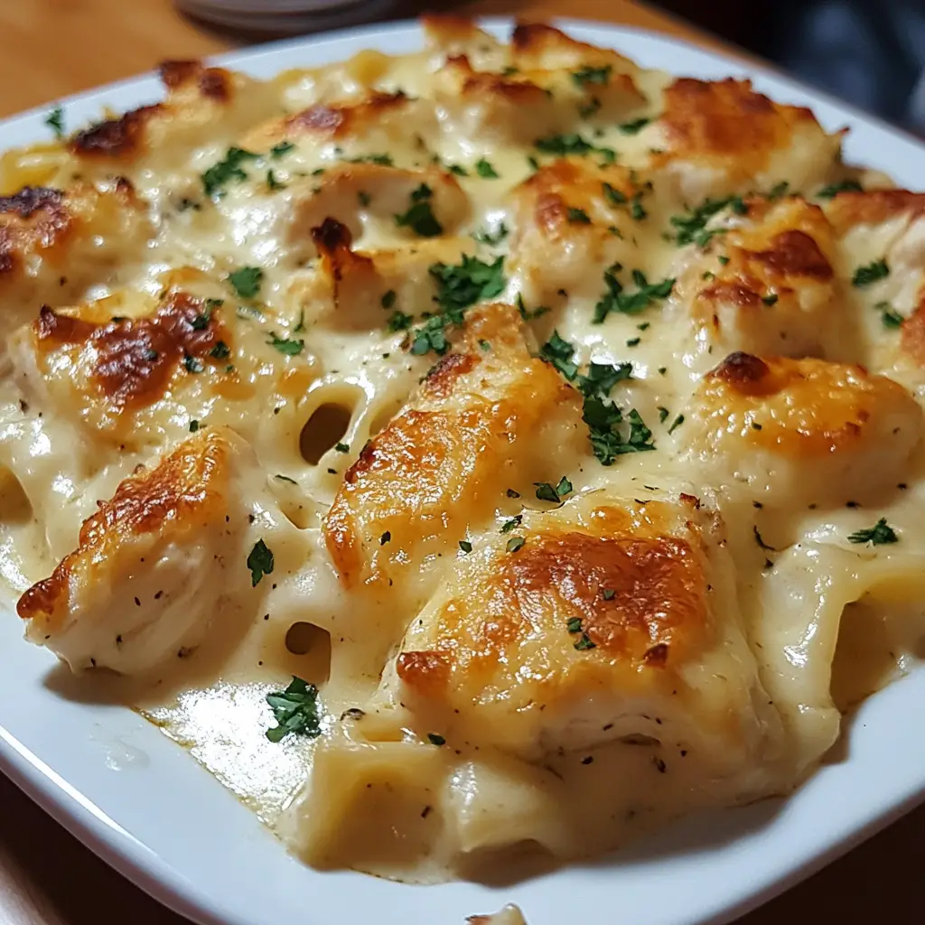 A simple and delicious Dump-and-Bake Chicken Alfredo Casserole that requires minimal effort and delivers maximum flavor.