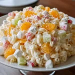 A nostalgic and creamy salad made with acini di pepe pasta, fruit cocktail, crushed pineapple, and mini marshmallows, perfect for potlucks and gatherings.