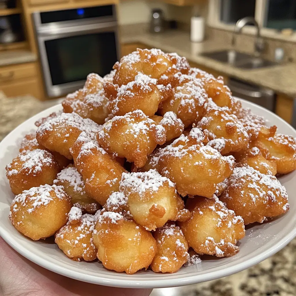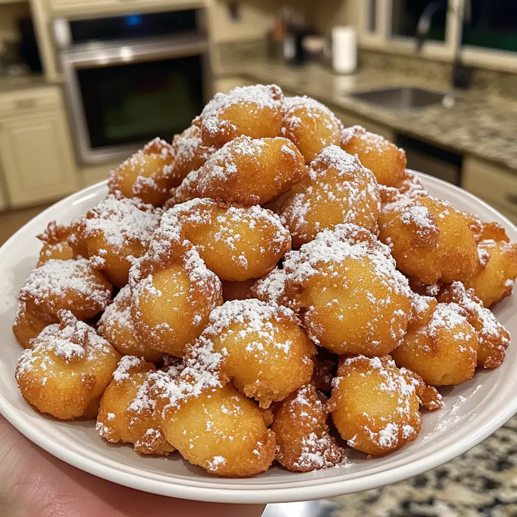 Once they’re golden brown, carefully remove the bites from the oil and drain them on paper towels. This helps absorb any excess oil, keeping them light. Finally, dust them generously with powdered sugar before serving. The sight of those fluffy bites covered in sugar is simply irresistible! Serve them warm for the best experience, and watch everyone’s eyes light up!