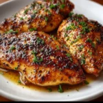 Add the unsalted butter to the skillet, letting it melt into the sauce. Spoon the thickened glaze over the chicken for an additional 1–2 minutes, creating a rich, glossy finish that beckons you to dive in.