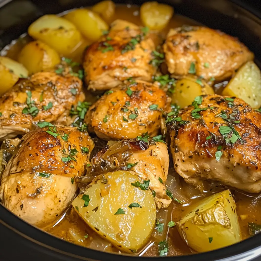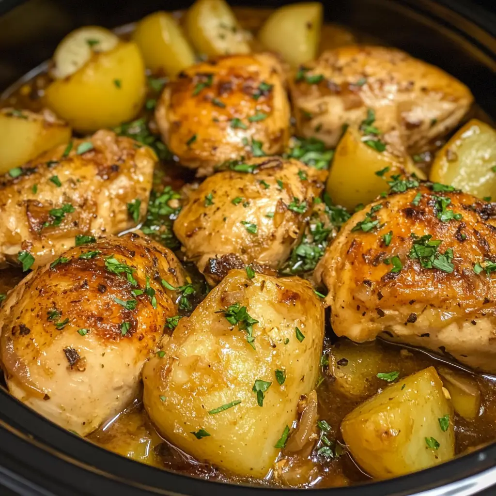 A delicious and easy recipe for Garlic Parmesan Crockpot Chicken and Potatoes, perfect for a comforting meal.