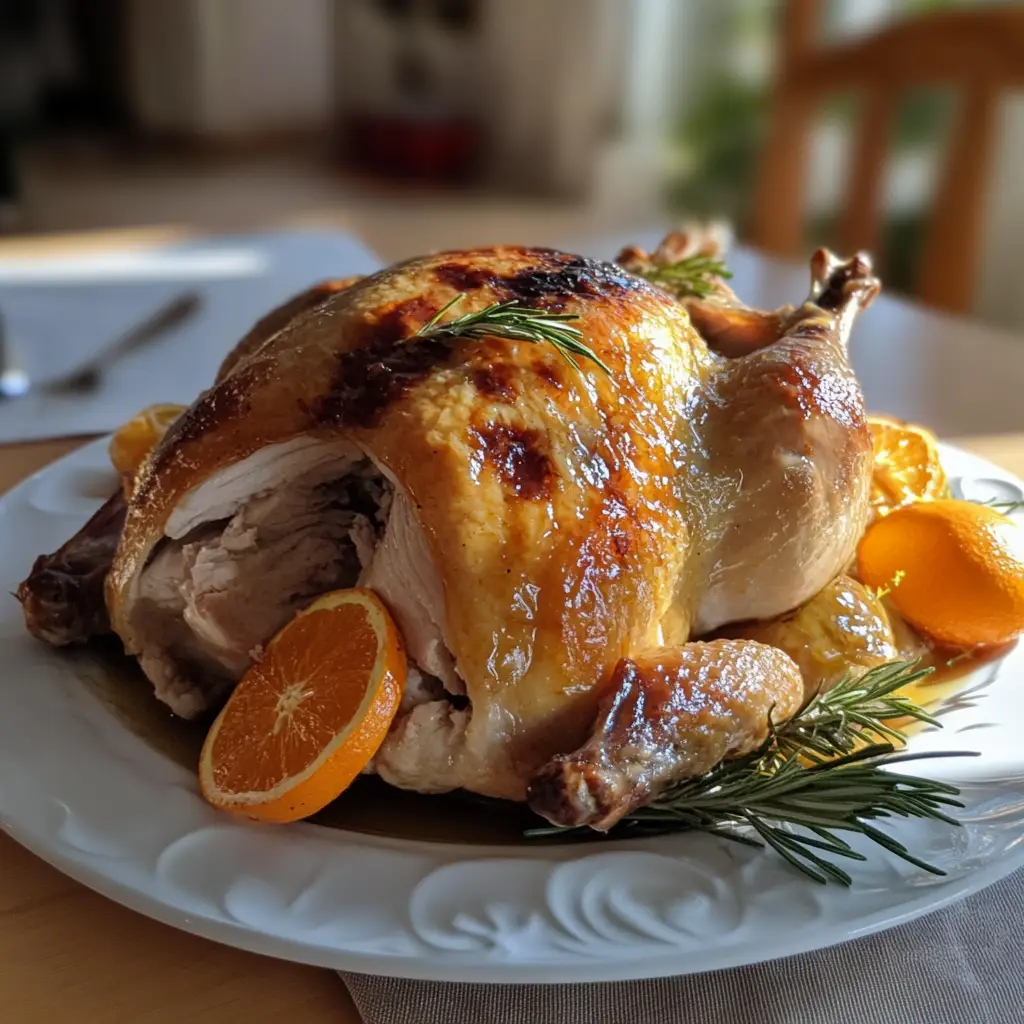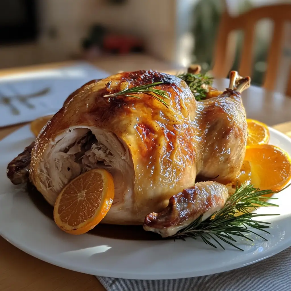 A deliciously glazed roast turkey infused with ginger and orange flavors, perfect for holiday celebrations.