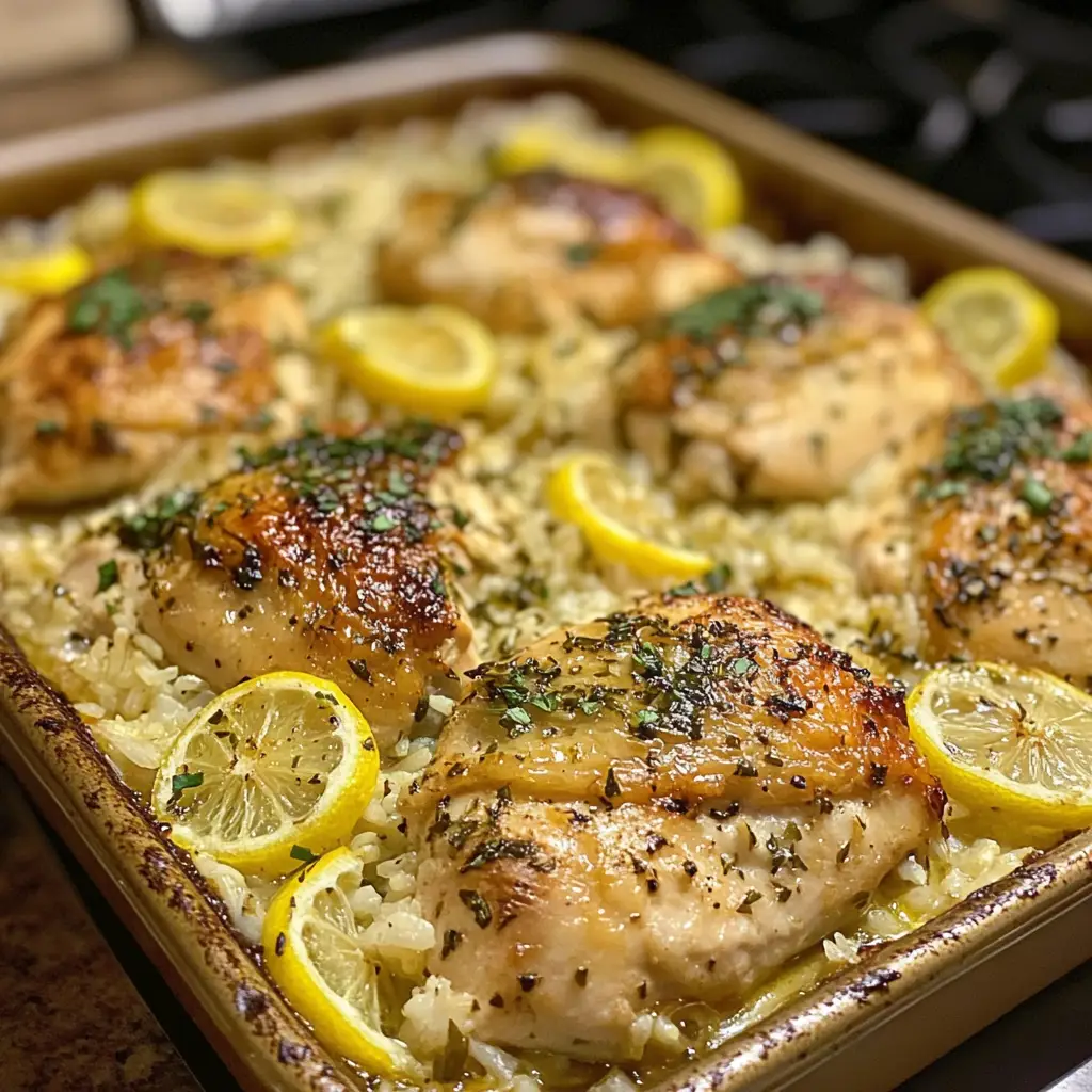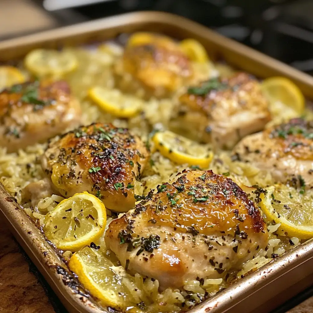 A delicious and easy-to-make Greek Lemon Chicken and Rice Bake that combines tender chicken with flavorful rice, all baked to perfection.