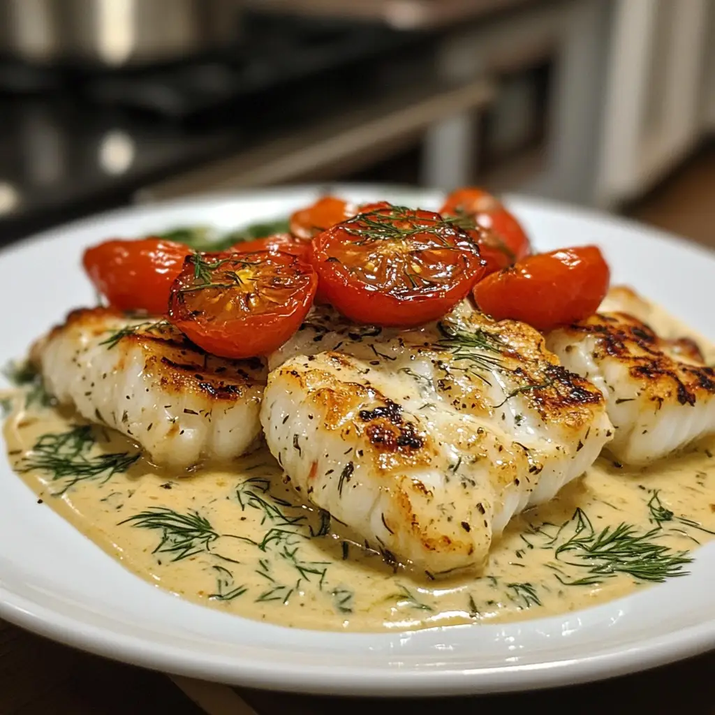 Introduction to Grilled Cod with Roasted Tomatoes & Creamy Dill Sauce