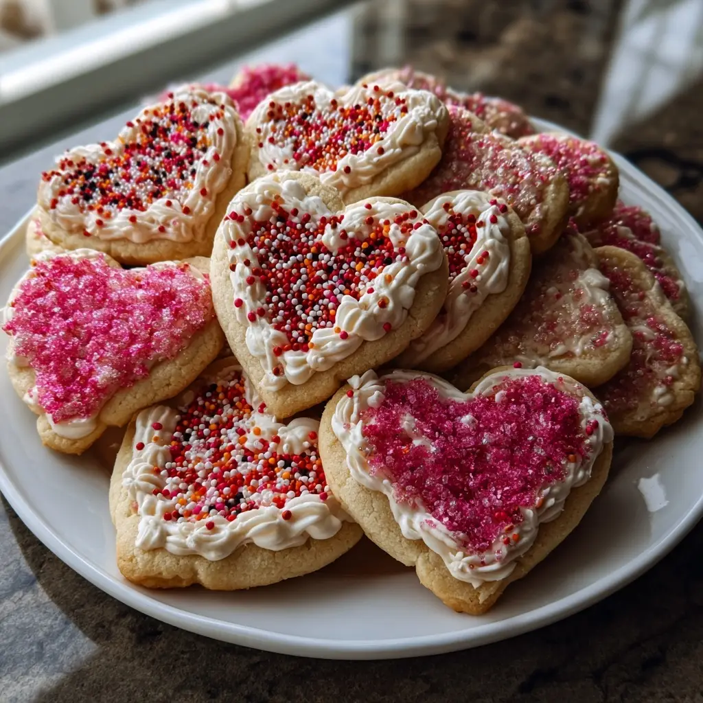 Delicious and soft sugar cookies shaped like hearts, perfect for any occasion.