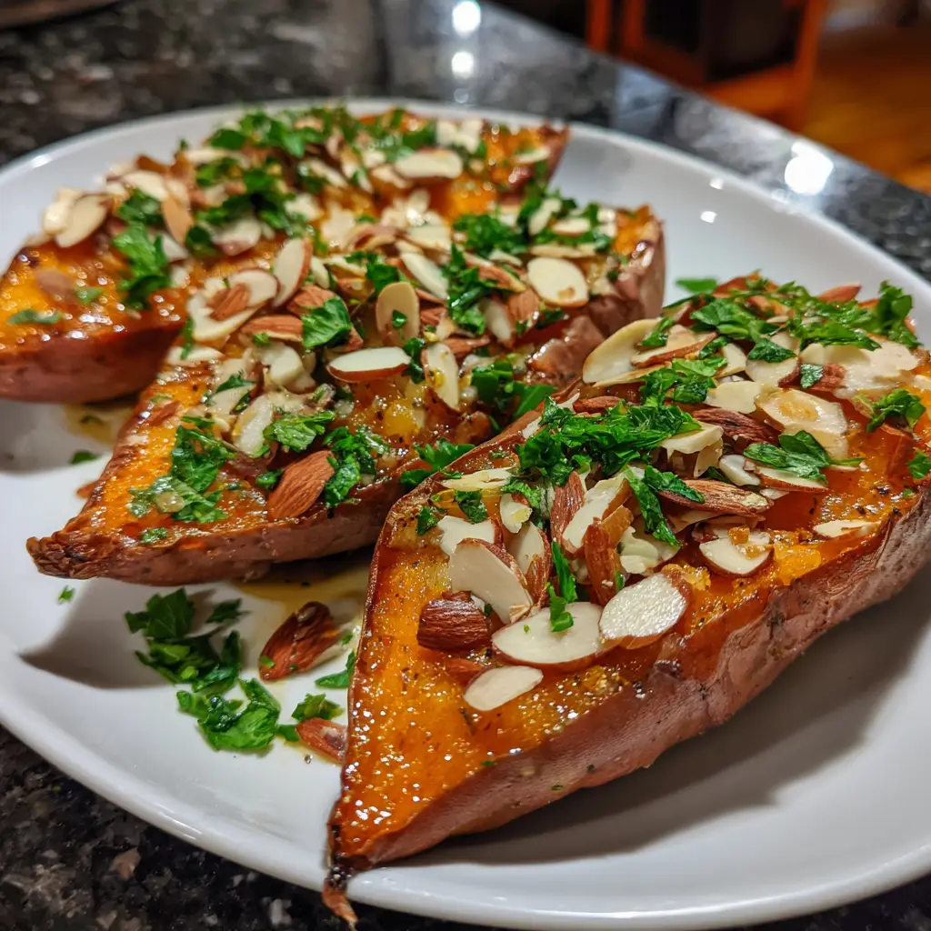 Honey Butter & Almond Sweet Potato Boats are a delightful and nutritious dish that combines the natural sweetness of sweet potatoes with the rich flavors of honey and almonds.