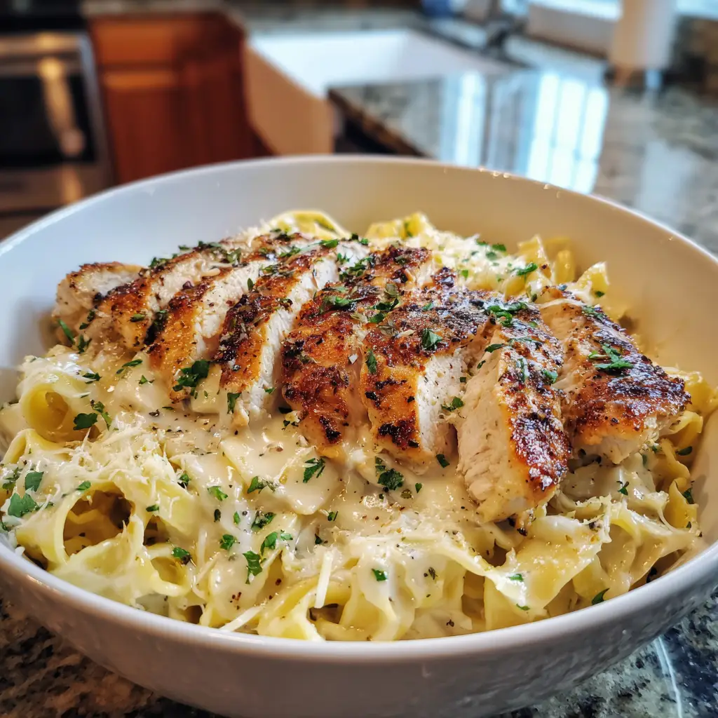 Finally, serve your Honey Garlic Chicken Alfredo hot, garnished with a sprinkle of fresh parsley. This adds a pop of color and a hint of freshness. Enjoy every creamy, flavorful bite!