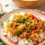 Picture a symphony of colors on your plate: vibrant bell peppers soaked in a sweet and tangy sauce, the earthy tones of onion, all brightened by chunks of juicy pineapple. Each mouthful offers a delightful contrast of textures. The chicken remains juicy and tender, while the vegetables offer a satisfying crunch. Paired with fluffy rice that absorbs the decadent sauce, this meal truly embodies a perfect harmony of flavors and textures, waiting to warm your heart and ignite your appetite.