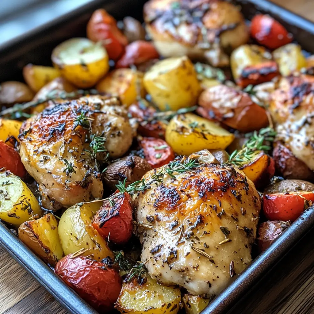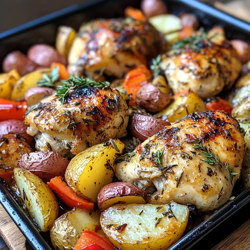 Once it’s done, take the dish out of the oven and let it rest for a few minutes. This helps the juices settle. Serve the chicken, potatoes, and veggies on a platter, and don’t forget to drizzle some of that delicious pan sauce over everything. Pair it with a fresh salad or some crusty bread, and you’ve got a meal that’s sure to impress!