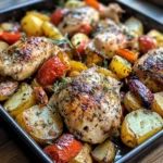 Once it’s done, take the dish out of the oven and let it rest for a few minutes. This helps the juices settle. Serve the chicken, potatoes, and veggies on a platter, and don’t forget to drizzle some of that delicious pan sauce over everything. Pair it with a fresh salad or some crusty bread, and you’ve got a meal that’s sure to impress!