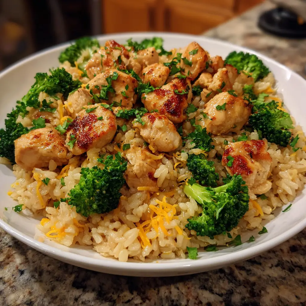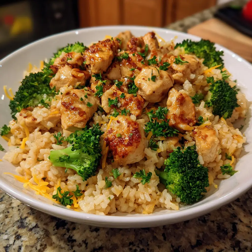 A simple and delicious one-pot meal featuring chicken, broccoli, and rice, perfect for a quick dinner.