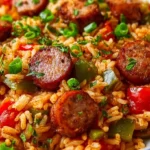 A hearty and flavorful dish that combines juicy sausage, vibrant vegetables, and fluffy rice all cooked in one pot for minimal cleanup.