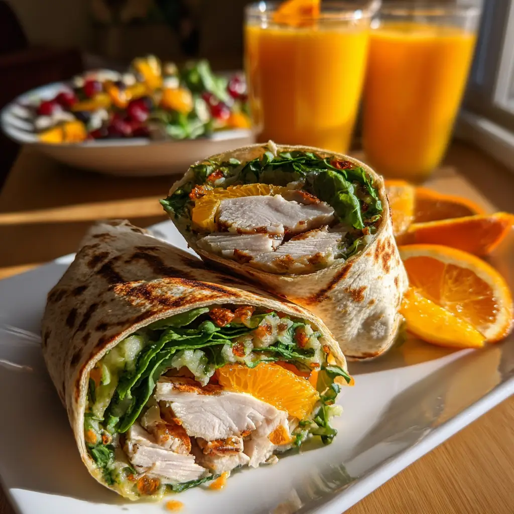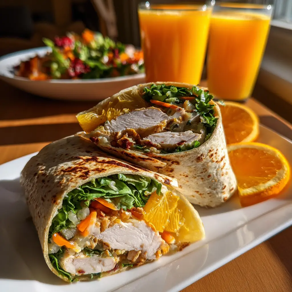 A flavorful and refreshing turkey wrap featuring a sweet orange glaze, perfect for a satisfying lunch.