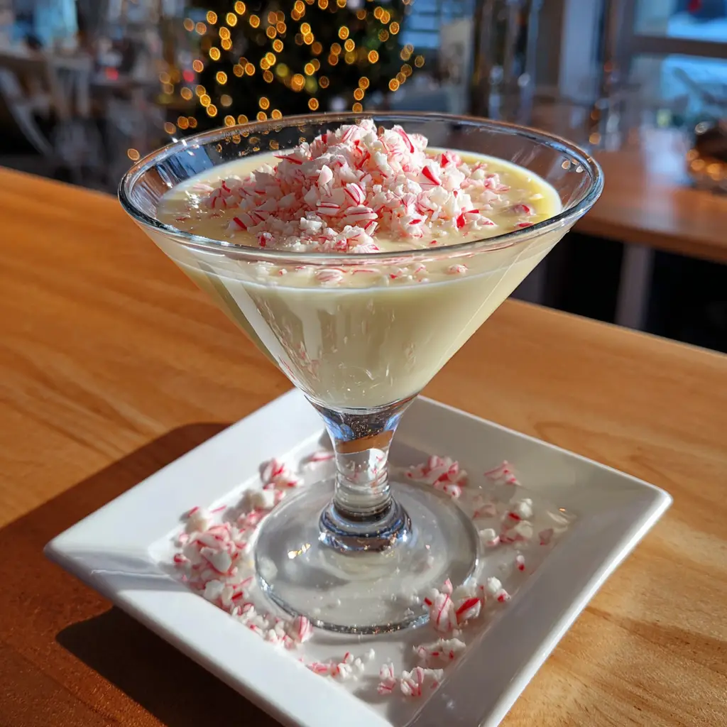 Garnish: Mini candy canes, a sprig of fresh mint, white chocolate shavings, or a dusting of edible glitter.