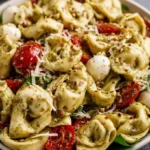 A vibrant and creamy Pesto Tortellini Salad that bursts with flavorful ingredients like fresh mozzarella, cherry tomatoes, and baby spinach, perfect for any summer gathering.