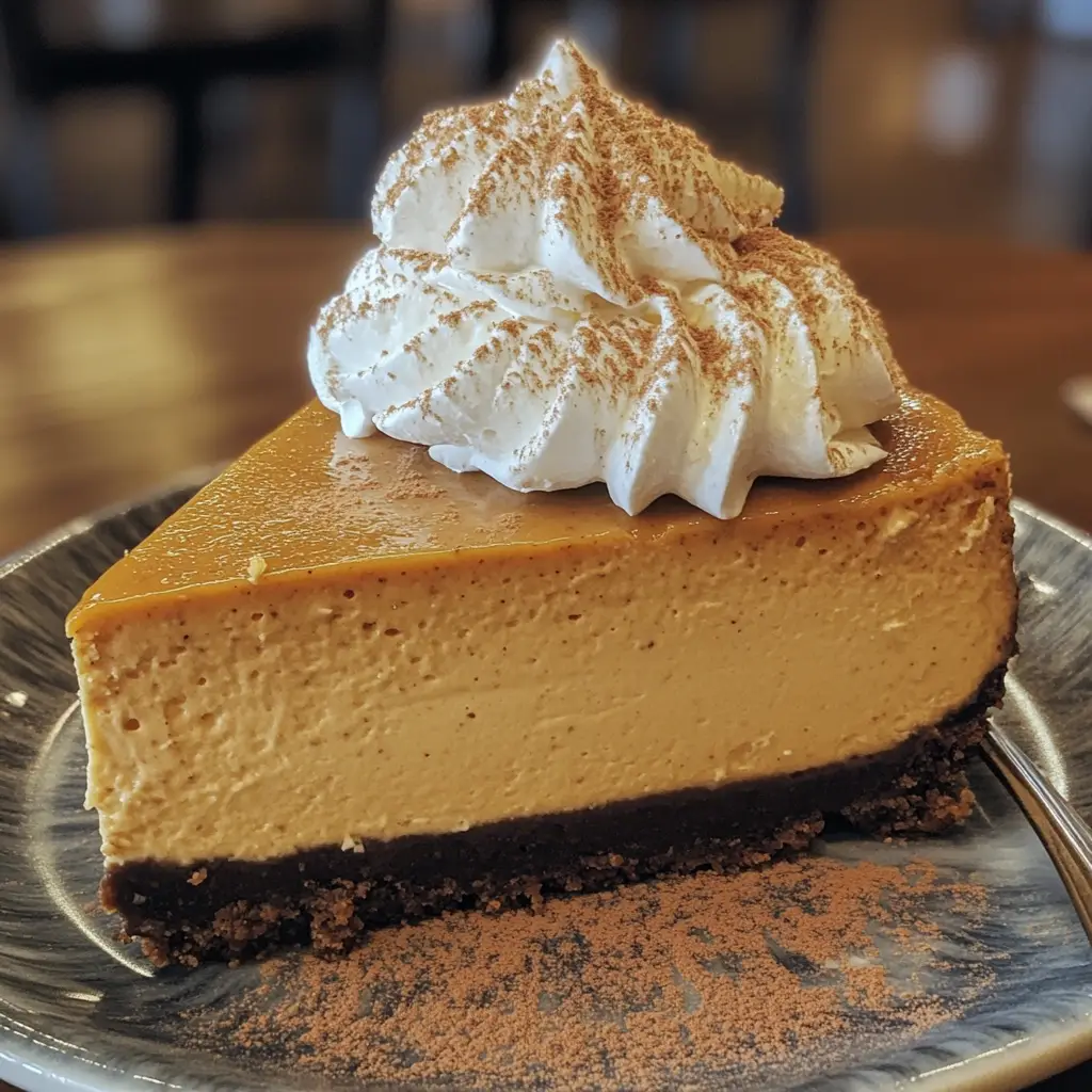 A deliciously creamy pumpkin spice cheesecake that captures the essence of fall with its rich flavors and smooth texture.