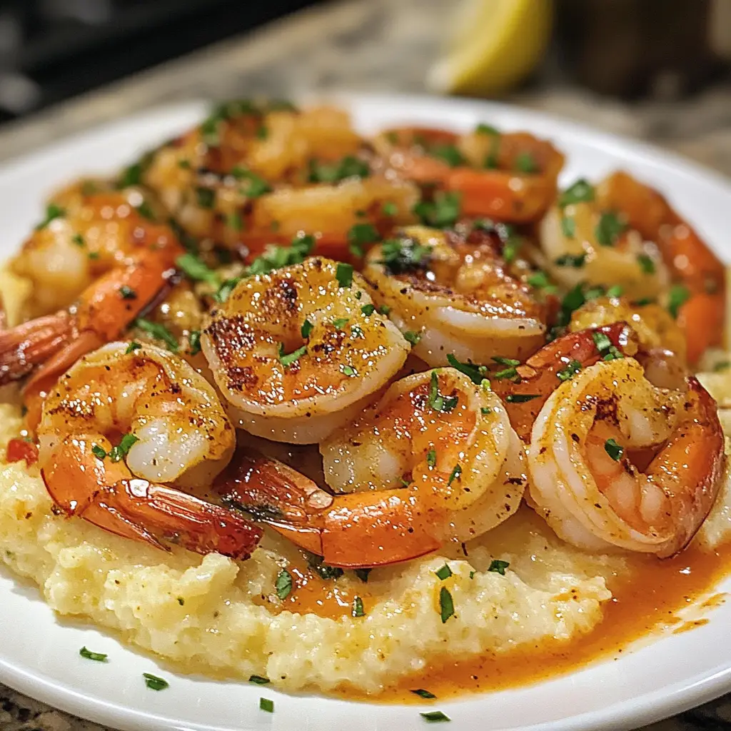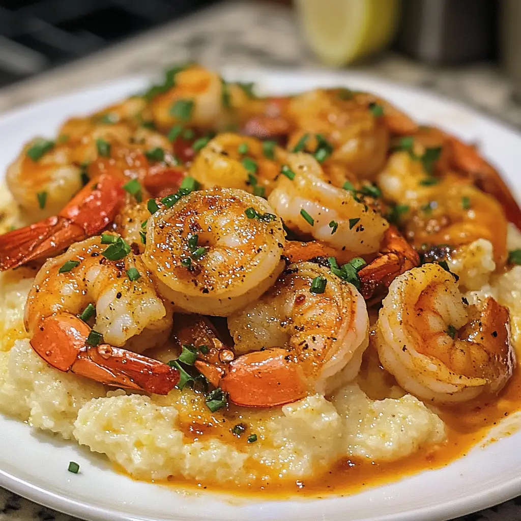 A delicious Cajun-inspired dish featuring red snapper and shrimp served over creamy grits.