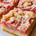 Delightful springtime bars featuring a buttery crust, a creamy custard filling, and vibrant rhubarb for a perfect balance of sweetness and tartness.