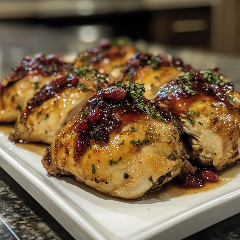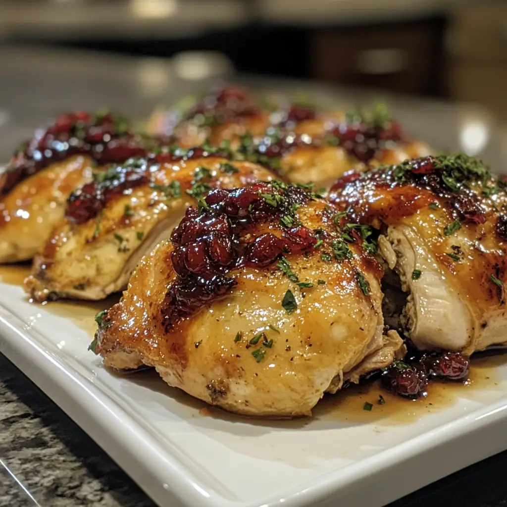 A flavorful roasted chicken dish glazed with a sweet and tangy cranberry orange sauce, perfect as a smaller alternative to turkey.