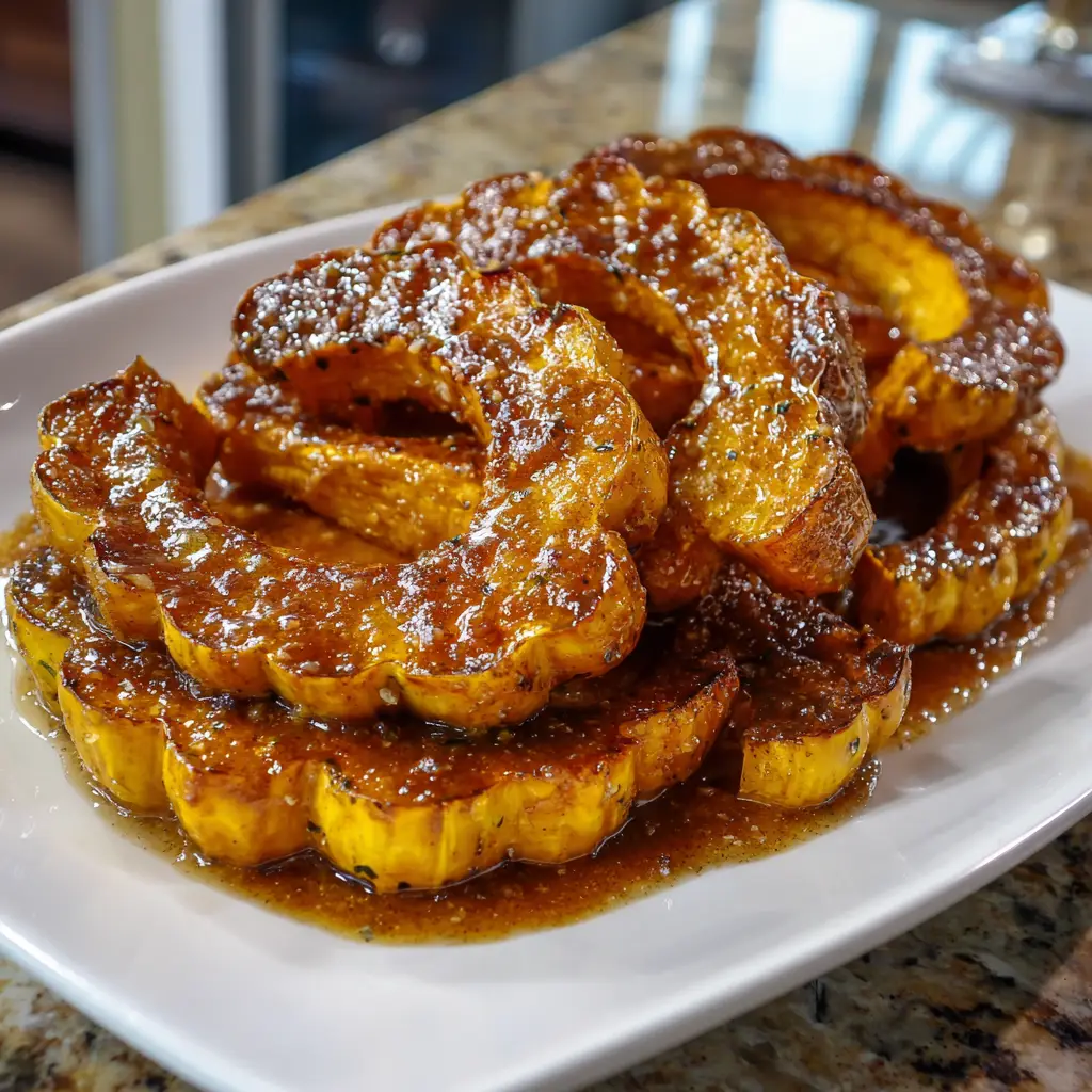 Once your squash is roasted to perfection, take it out of the oven and let it cool for a minute. Serve it warm, and if you’re feeling fancy, sprinkle some chopped pecans or a drizzle of maple syrup on top. This Roasted Delicata Squash with Cinnamon Butter is not just a side dish; it’s a celebration of flavors!