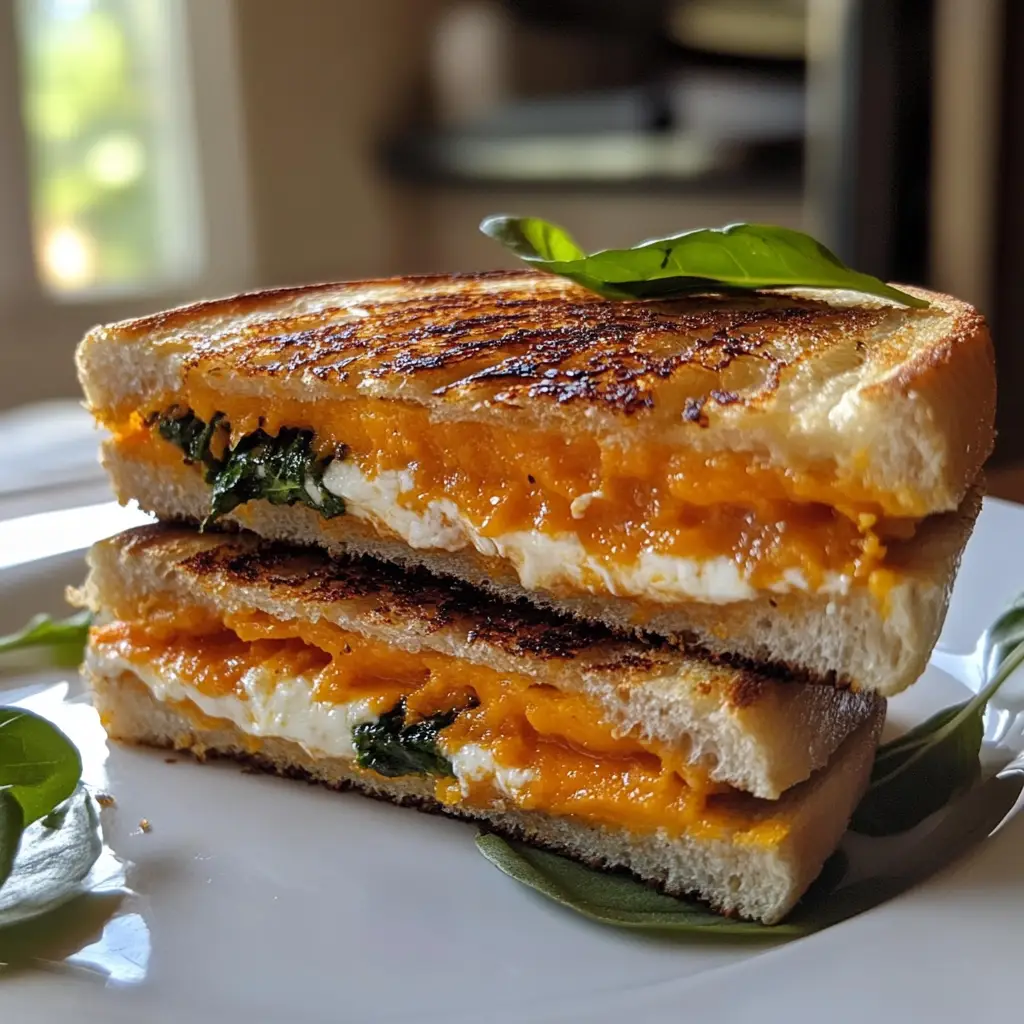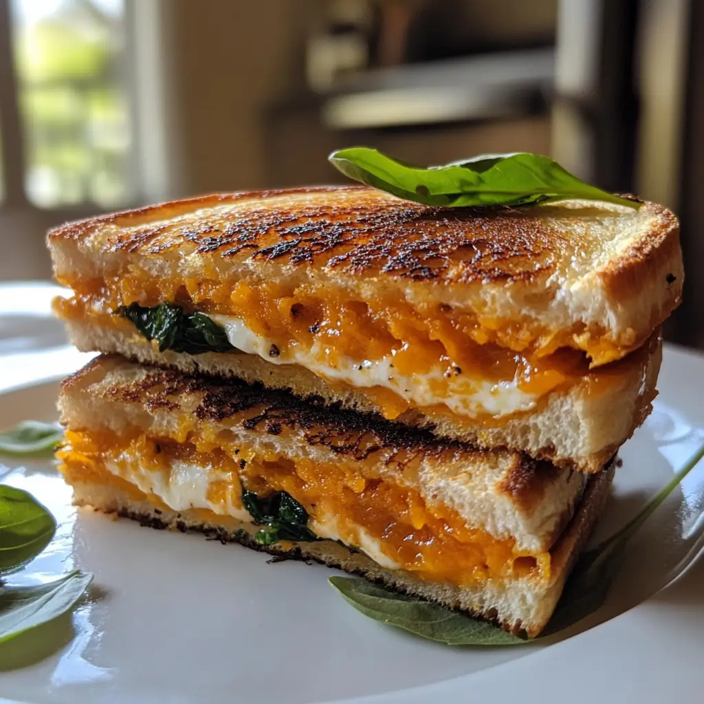 A delicious and savory panini featuring roasted pumpkin and creamy goat cheese, perfect for a satisfying meal.
