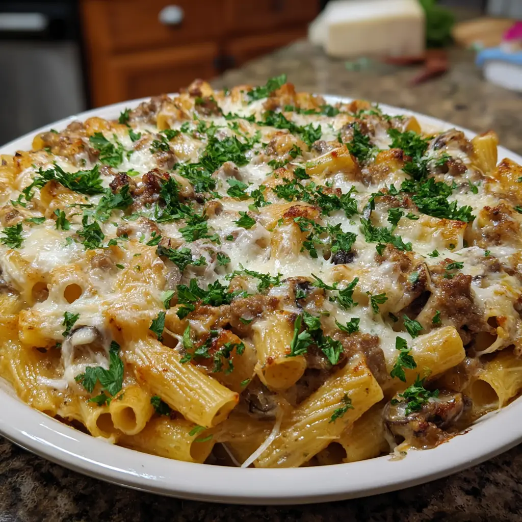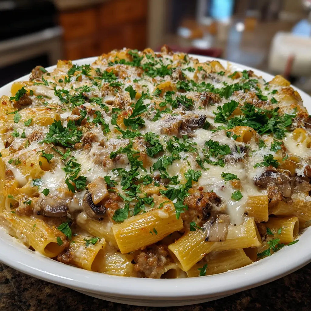 Sausage and Mushroom Alfredo Bake is a creamy and delicious dish that combines savory sausage, earthy mushrooms, and a rich Alfredo sauce, all baked to perfection.