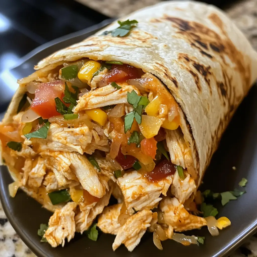 A flavorful and satisfying Southwest Chicken Wrap filled with grilled chicken, fresh vegetables, and zesty dressing.