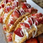 The vibrant colors of summer arrive tucked between crispy taco shells filled with sweet, creamy goodness. Imagine sinking your teeth into a Strawberry Crunch Cheesecake Taco: the moment you take a bite, a delightful mix of flavors floods your senses. Crunchy taco shells give way to a luscious cheesecake filling, while the strawberries burst with juicy sweetness, creating a harmony of textures that dances on your palate. Each bite invites you to revel in the simple pleasures of fresh fruit and rich creaminess, all drizzled in a warm, nostalgic feel that whispers of childhood treats.