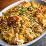 A delightful casserole that combines tender shredded chicken with savory corn, crispy tortilla chips, and creamy cheese for a perfect family meal.