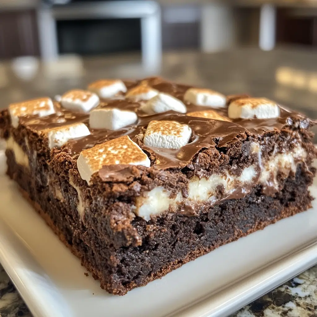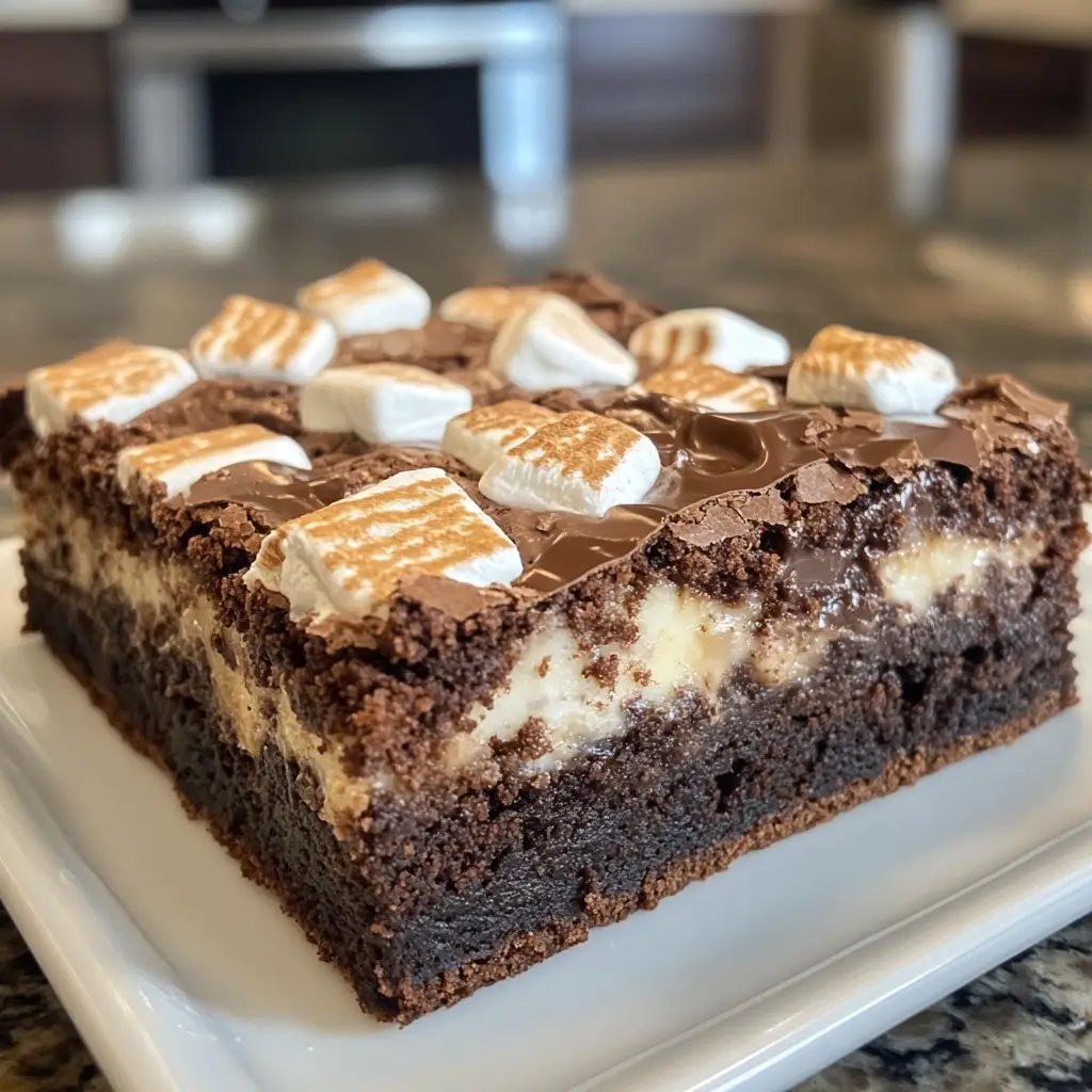 Deliciously easy brownies with a s’mores twist, combining chocolate, marshmallows, and graham crackers.