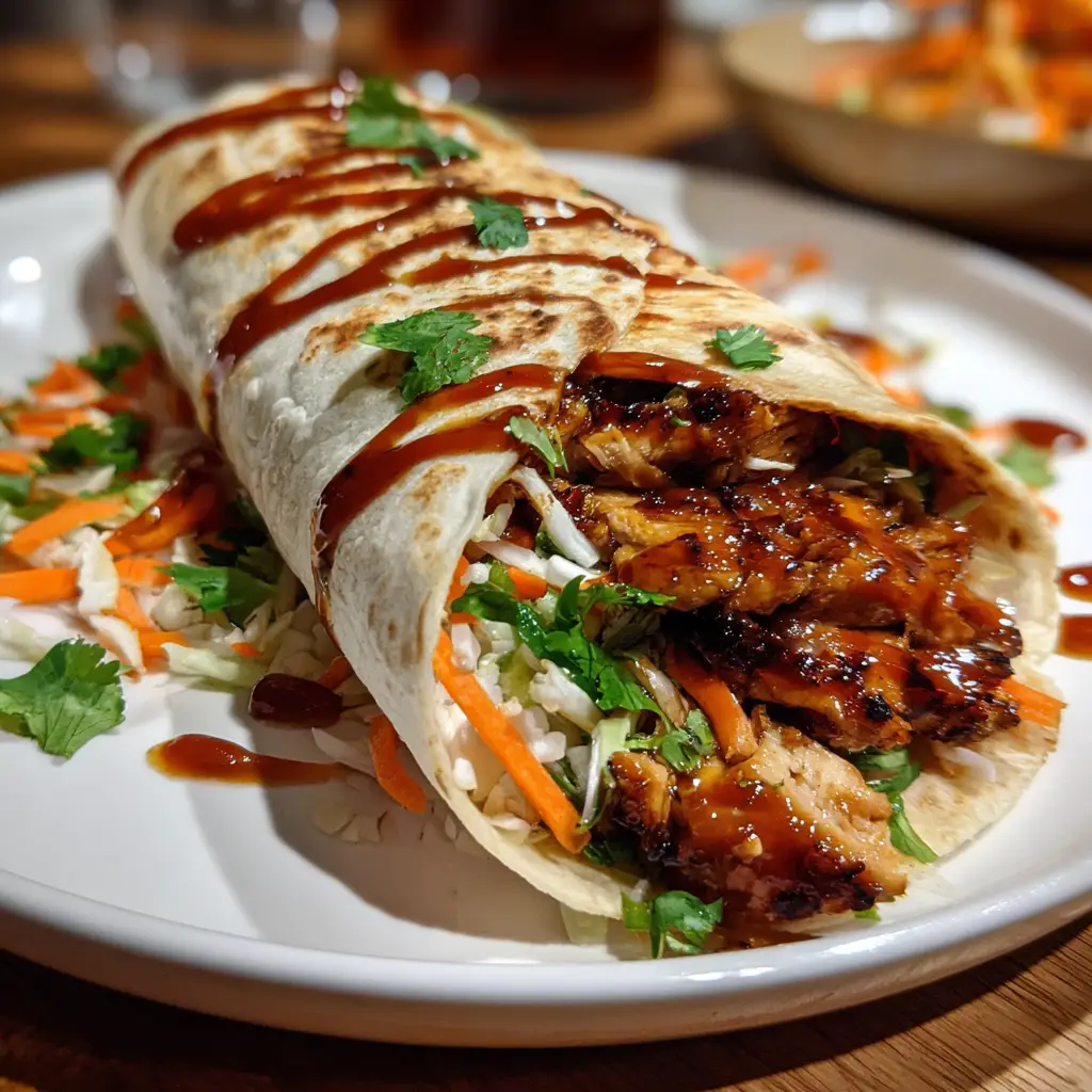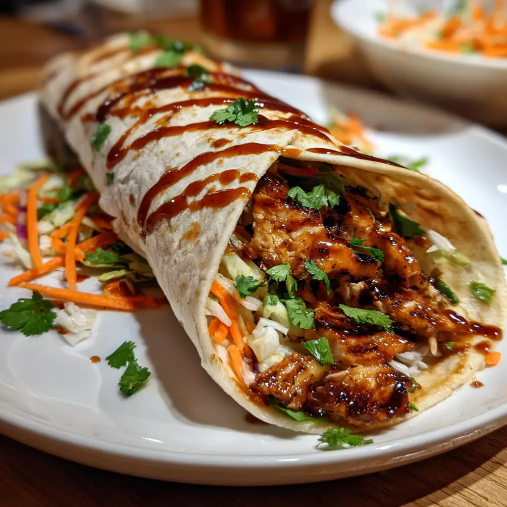 A delicious and savory wrap featuring tender chicken glazed with a sweet soy sauce, perfect for a quick meal or snack.