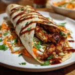 Now comes the fun part! Take a warm tortilla and lay it flat. Place a few slices of the glazed chicken in the center, then add shredded lettuce, julienned carrots, and chopped green onions. Roll the tortilla tightly, tucking in the sides as you go. Slice the wrap in half, and voilà! You have a beautiful Sweet Soy Glazed Chicken Wrap ready to enjoy!