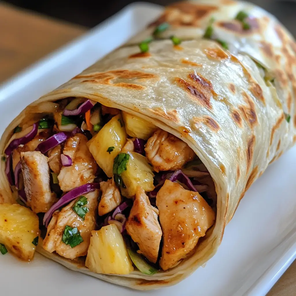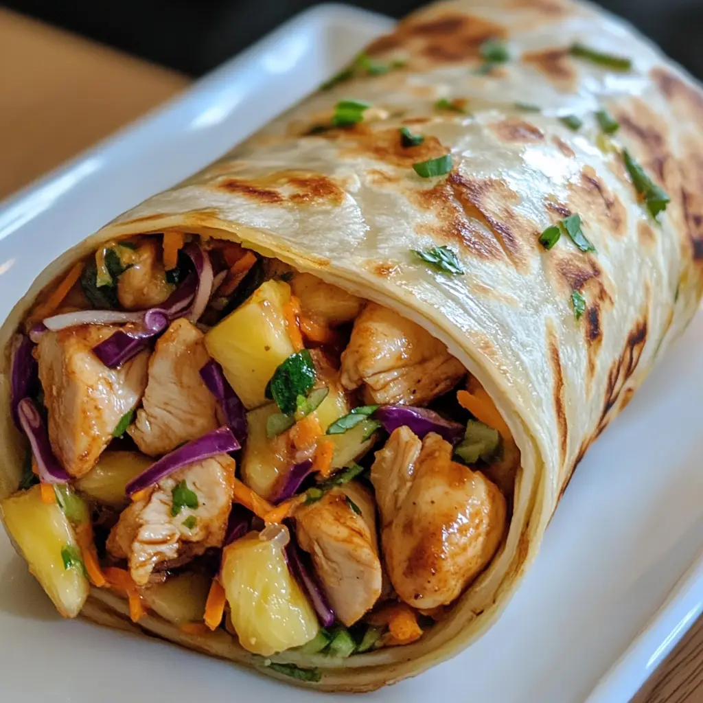 Keywords: Teriyaki Chicken, Pineapple Slaw, Wrap, Asian Cuisine, Healthy Lunch